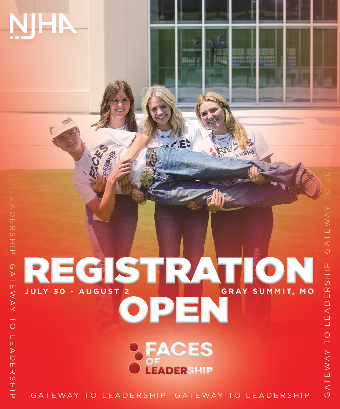 Don't miss your chance to learn, lead and achieve with the NJHA during the 2025 Faces of Leadership at the Purina Animal Nutrition Conference Center in Gray Summit, Mo., July 30 - Aug. 2.
